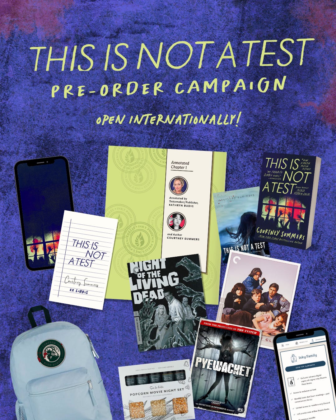 🧟♀️🐦🔥 A 3 month paid subscription to The Inky Phoenix community on Bindery Books, so you can see what Bindery’s community model is all about! Inky Phoenix offers a book club, private discord, exclusive author events, behind-the-scenes content (Kathryn and I recently released a BTS video about the cover design process for This is Not a Test) and opportunities to read the imprint’s forthcoming titles early and let me tell you—Inky Phoenix has some amazing upcoming titles.