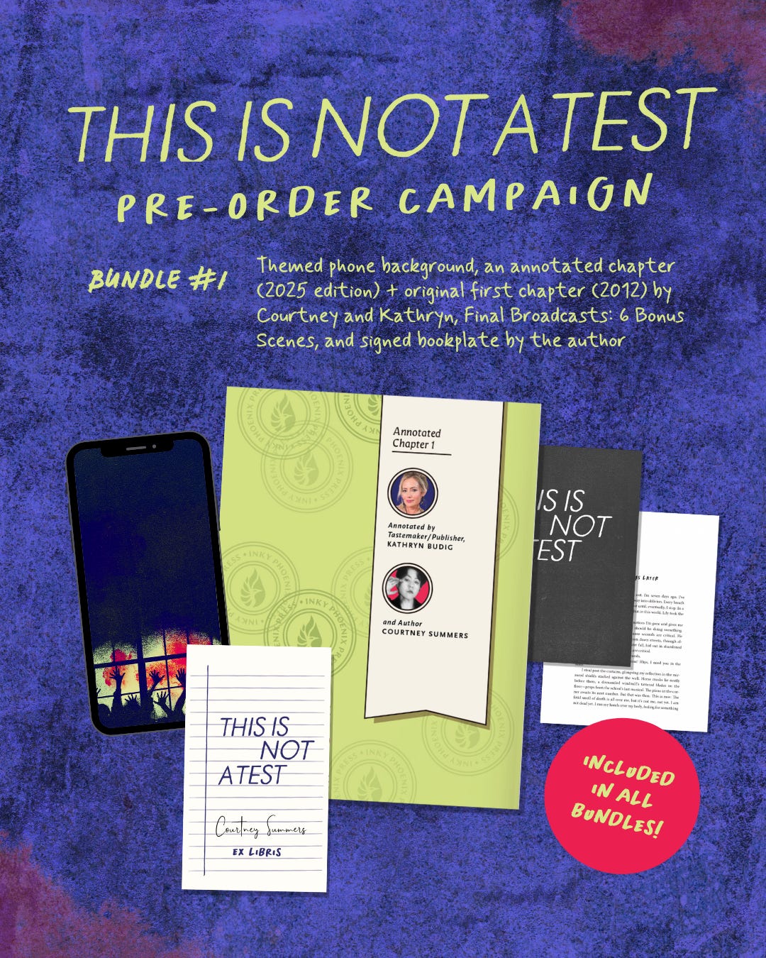 Everyone who ✨preorders✨ This is Not a Test and submits proof of purchase will receive all of the above AND automatically be entered for a chance to win Bundle #2.